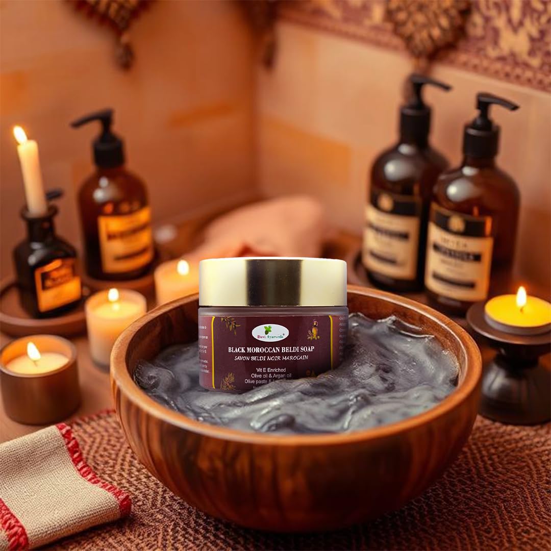 • ✅ 100% Natural Black Soap – Made from pure olive oil and eucalyptus, this Moroccan soap softens the skin, removes impurities, and prepares it for exfoliation.