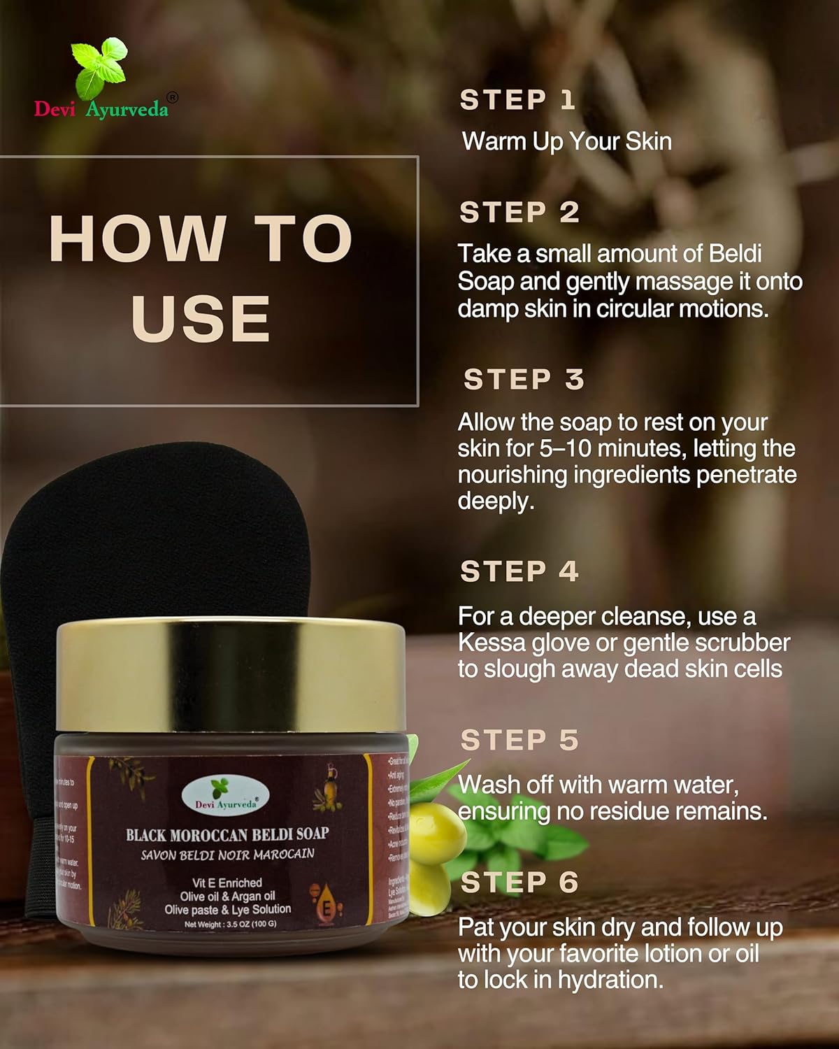 • ✅ Easy to Use – Apply Beldi soap to damp skin, let it sit for a few minutes, then exfoliate with the Kessa glove for visible dead skin removal.