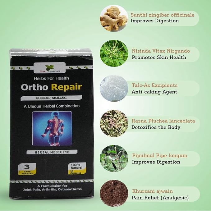 An herbal combination for Joint Pain, Arthritis and osteoarthritis. It strengthens the joints which increases the mobility and also helps to reduce pain.